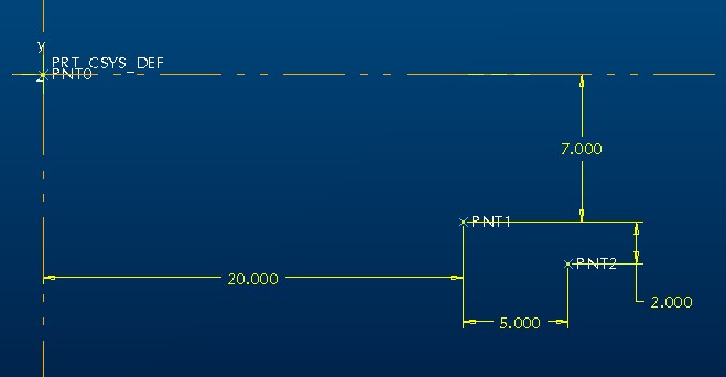 請注意,有一個點在缺省的坐標系上,而另外兩個點標出了尺寸: